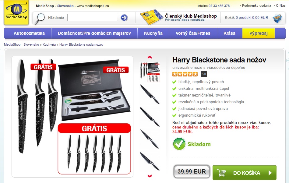 Rovnakú sadu nožov predáva na Slovensku spoločnosť MediaShop: