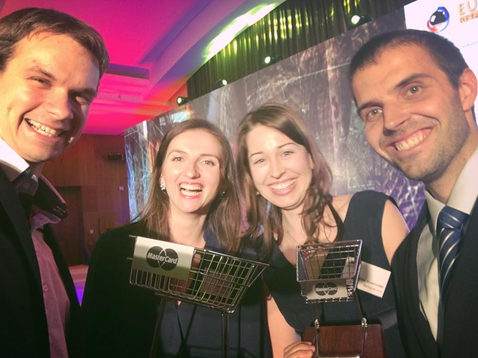 Michal Mesko a Martinus tim pri preberani ocenenia Mastercard