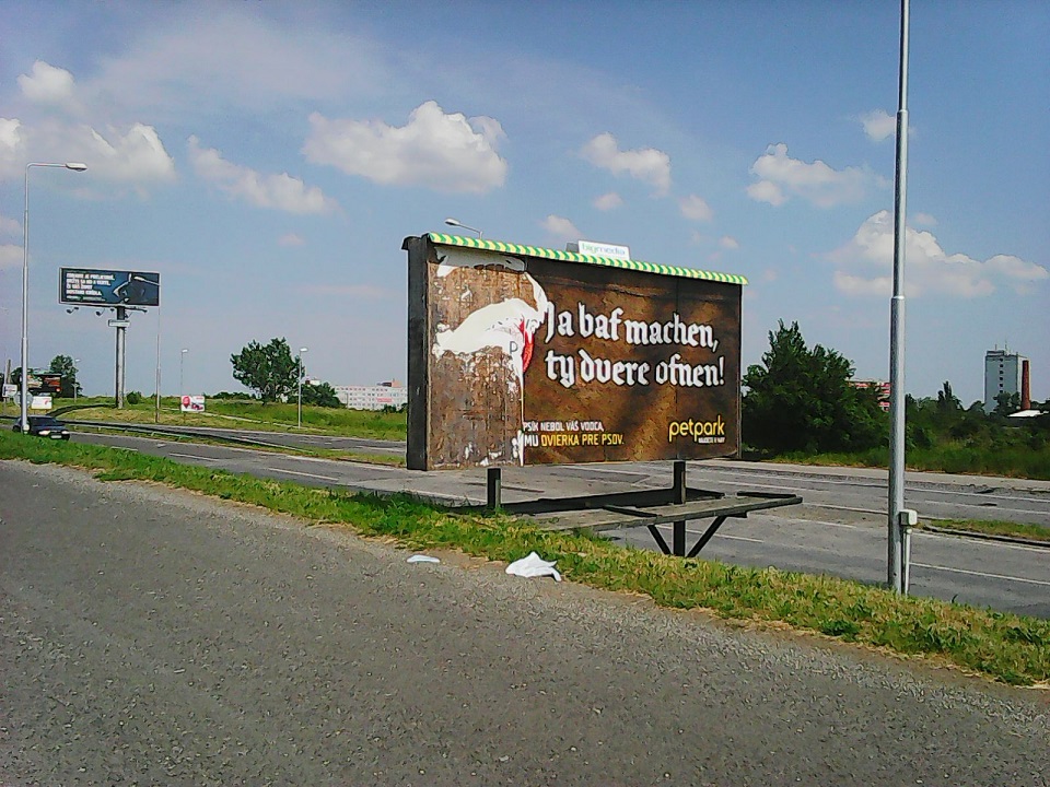 Aktuálna kontroverzná kampaň agentúry Wiktor Leo Burnett pre klienta Petpark je nasadená v outdoore. Všimli sme si, že napr. billboard v bratislavskej Rači v smere na Sv. Jur poškodili okoloidúci na známej cyklistickej trase, neďaleko bufetu Optimista.