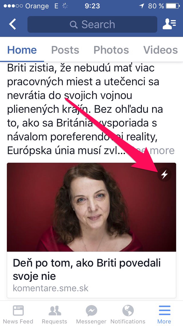 Instant Articels sú označené piktogramom blesku (zdroj: D.T.)