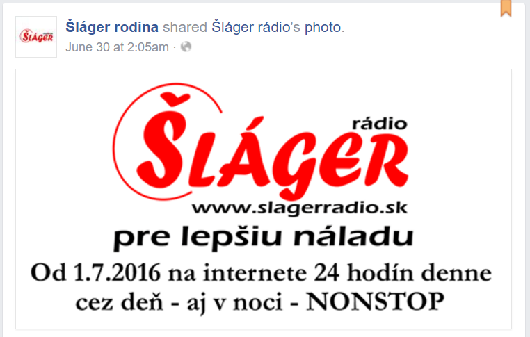 Rádio Šláger na svojom Facebooku hľadalo do poslednej chvíle partnera pre zachovanie vysielania. V súčasnosti je už stránka Šláger rodina na Facebooku nedostupná (zdroj foto: Facebook Šláger rodina)