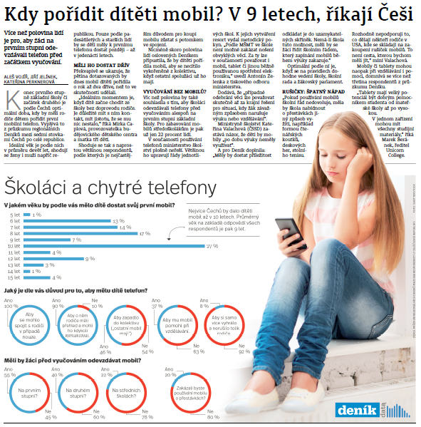 Nové oddelenie dátovej žurnalistiky vytvorilo prvé vizualizácie dát pre noviny Deník už 1. septembra a sú súčasťou článku, ktorý opisuje v koľkých rokoch má dieťa dostať svoj prvý mobil.