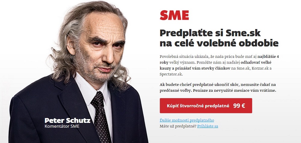 Podobnú ideu predplatiteľskej marketingovej komunikácie zvolilo nedávno vydavateľstvo Petit Press, ktoré ponúkalo zvýhodnené predplatné na celé volebné obdobie vlády.