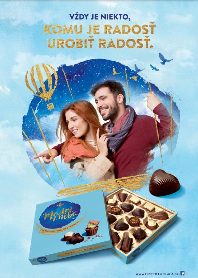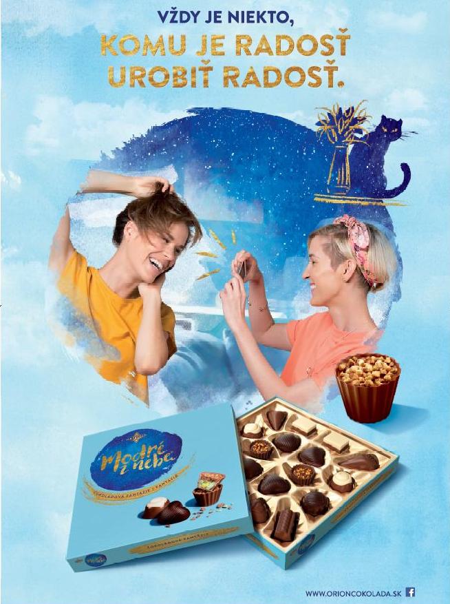 Súčasťou zmien, ktorými prešla bonboniéra Orion Modré z neba je aj komunikačná kampaň, ktorá bude podporená špeciálnym televíznym spotom s mottom „Vždy je niekto, komu je radosť urobiť radosť“.