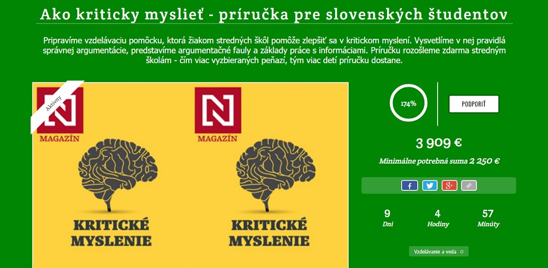 Aktívny na Startlab-e je aj denník N, ktorý cez túto crowdfundingovú platformu napríklad dofinancovával knihu „Pravda a lož na Facebooku“ alebo i príručku pre študentov „Ako kriticky myslieť“.