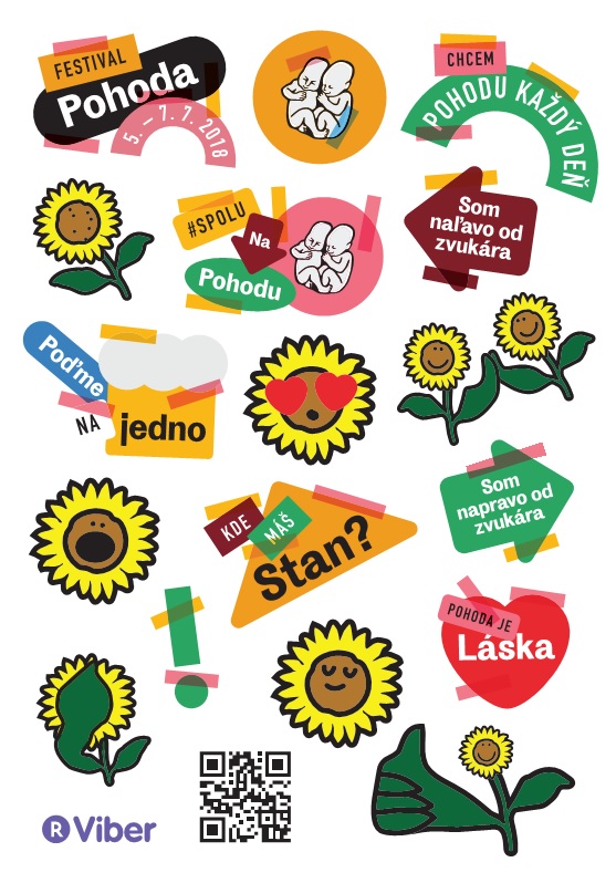 „Pri tvorbe samolepiek a obsahu do Komunity sme sa zamýšľali nad tým, čo motivuje a láka našich návštevníkov, aké frázy a výrazy najčastejšie používajú v spojení s Pohodou, a ktoré by sme mohli používať aj v každodennom živote. Spolu s dizajnérmi zo štúdia Milk sme tak pripravili balík samolepiek obsahujúci emotikony a frázy ako: usmievajúce sa slnečnice, „Napravo od zvukára“, „Pohoda je láska“ alebo „Poďme na jedno“. Partnerstvo so spoločnosťou Viber nám dáva šancu vyskúšať nové formy komunikácie a spojenia s našimi návštevníkom. V najužšom tíme Pohody už sme veľkými fanúšikmi samolepiek a Komunity a veríme, že ich budú milovať aj naši návštevníci,“ povedala o spolupráci Suzanne Verschueren, zodpovedná za medzinárodné spolupráce Pohody.