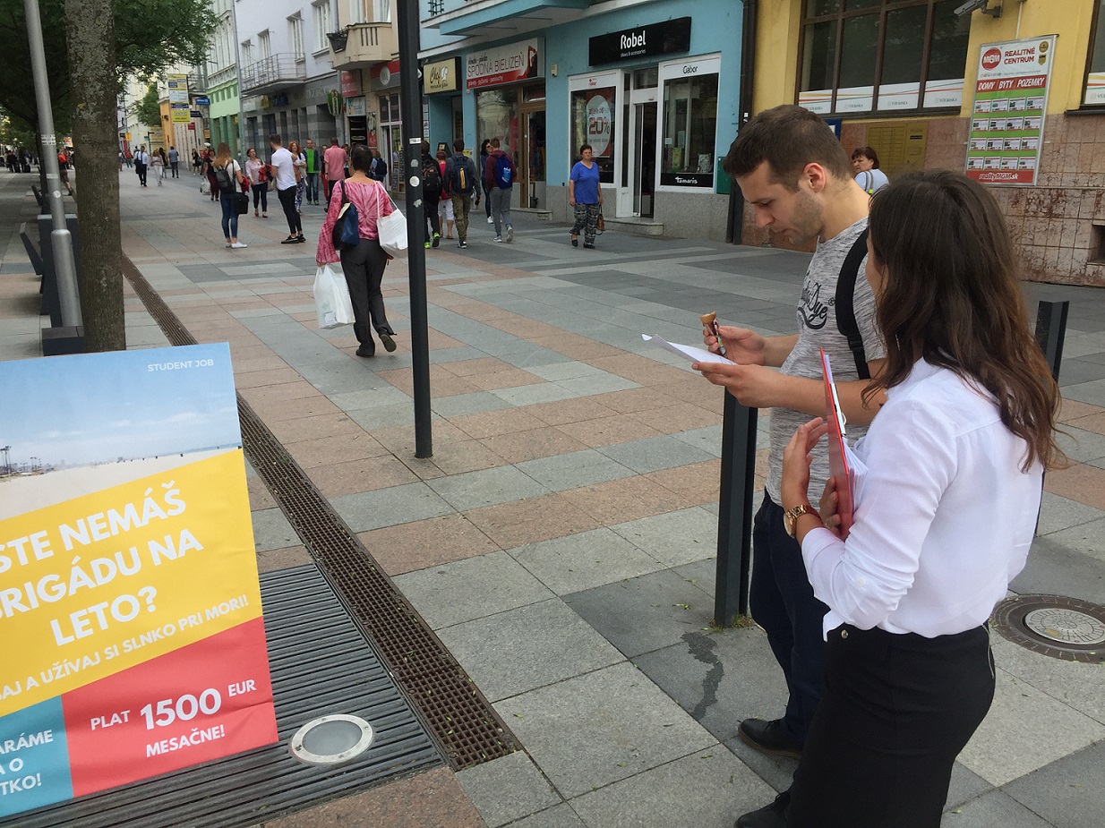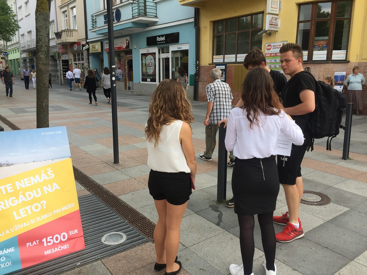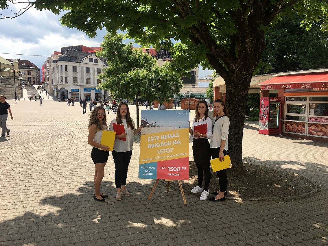 Študentky sa zahrali na agentúru, ktorá plagátom v centre Žiliny lákala v poobedňajších hodinách na letnú brigádu snov smerovanú študentom. Priebeh kampane kopíroval praktiky otrokárov: výhodná ponuka, ktorá je cielená na zraniteľnú skupinu.