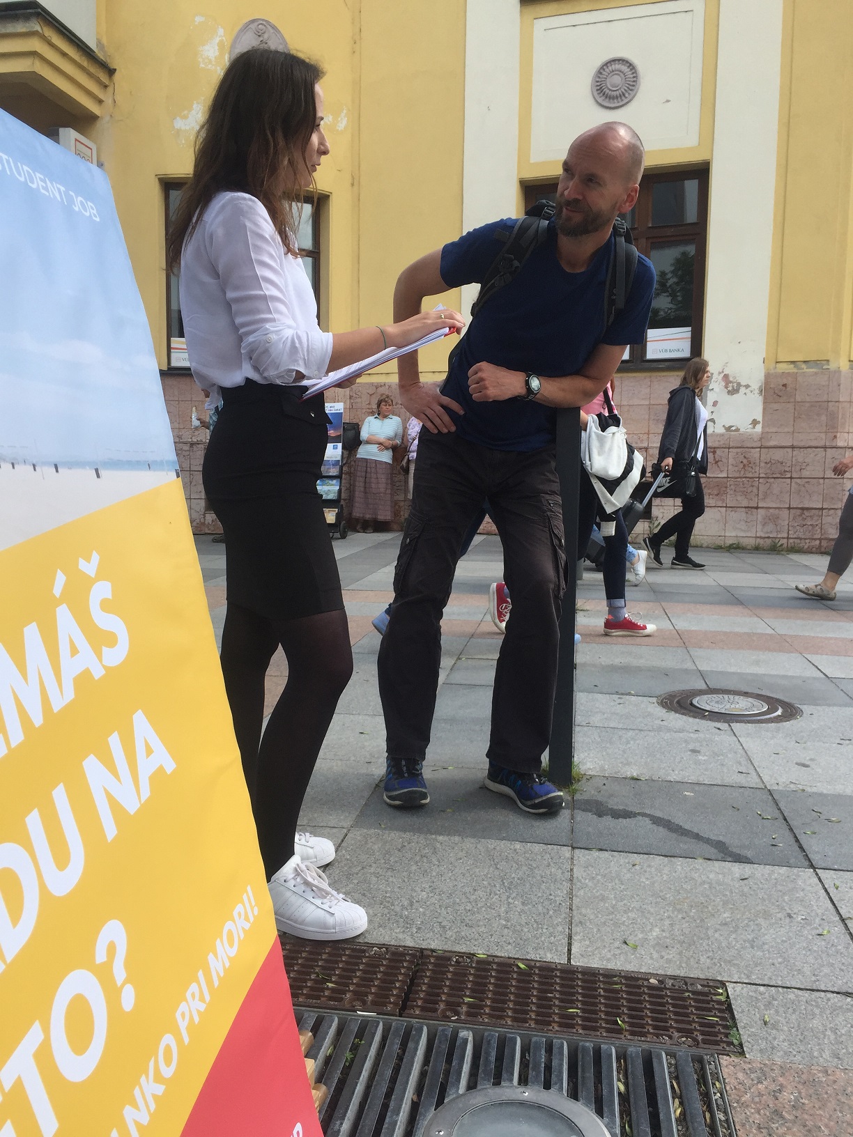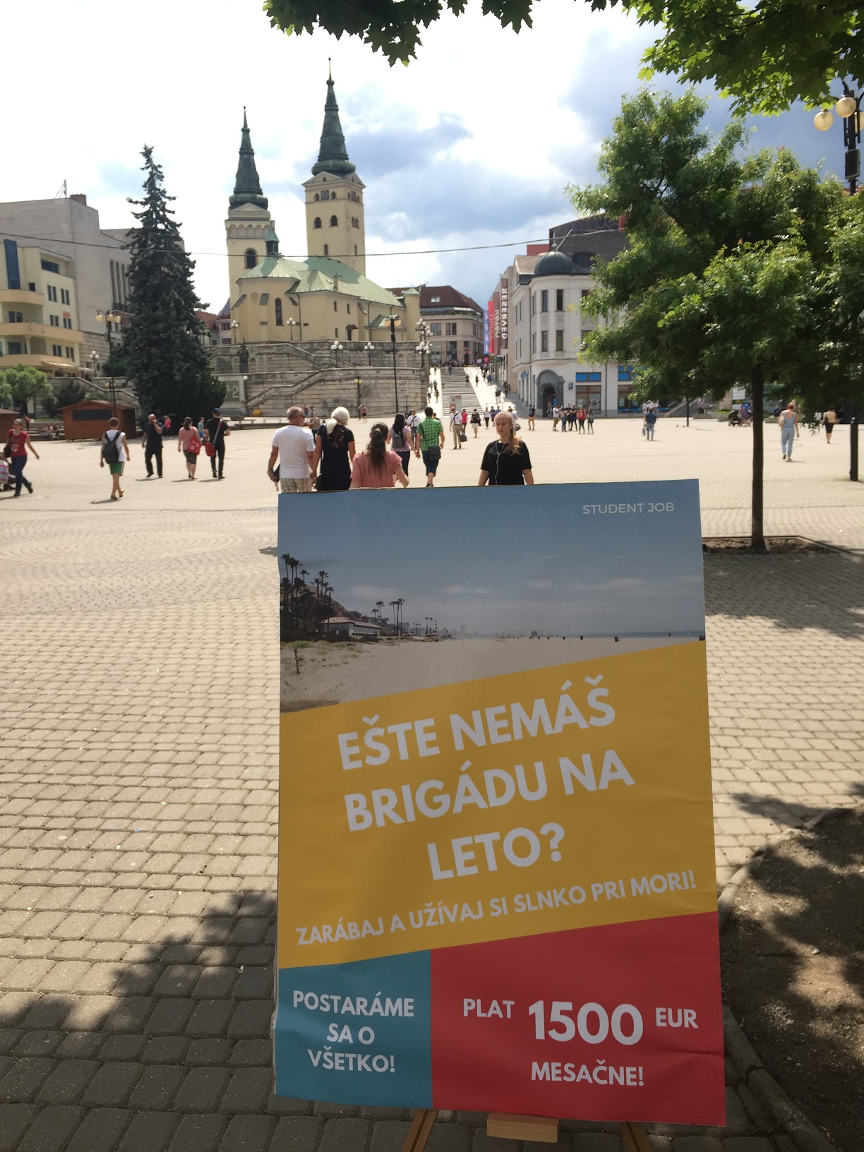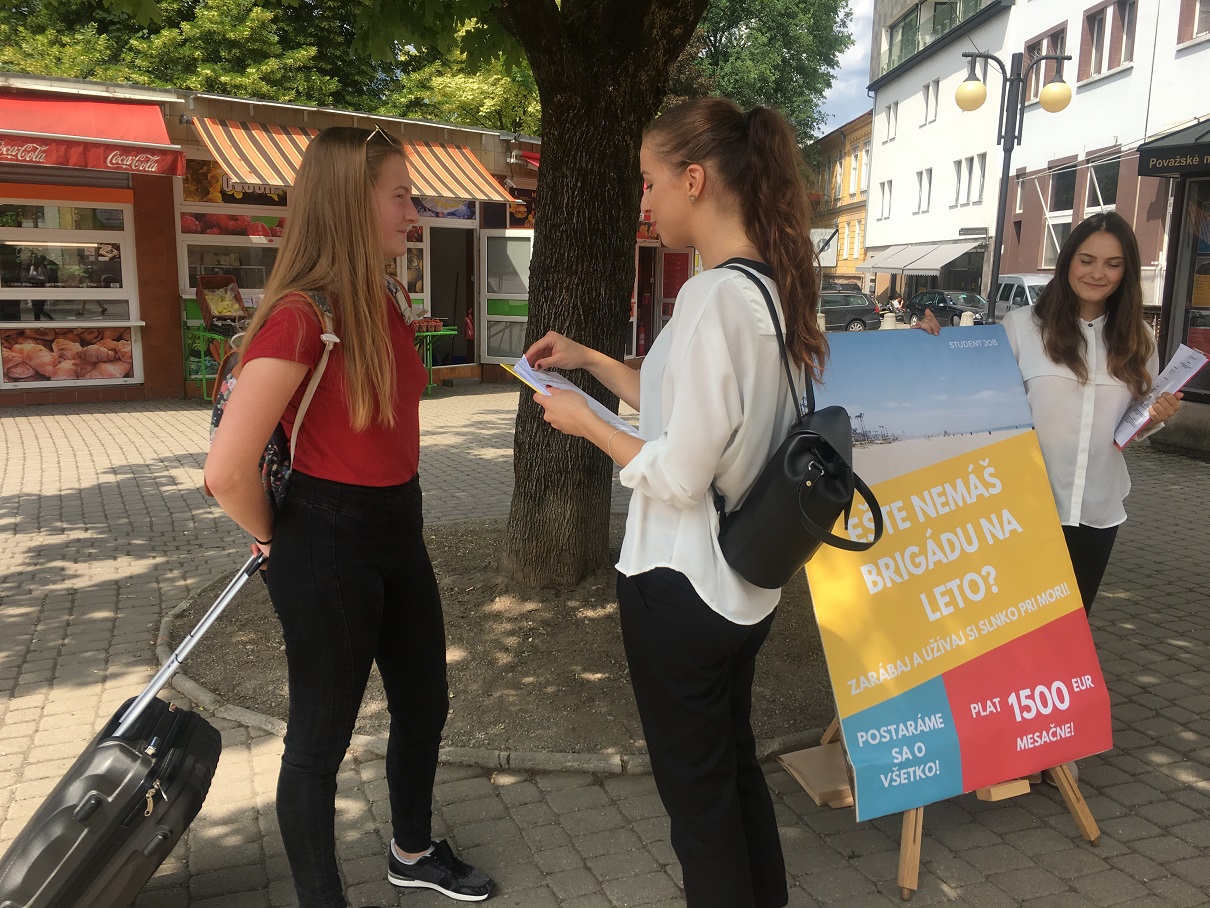 Študentky sa zahrali na agentúru, ktorá plagátom v centre Žiliny lákala v poobedňajších hodinách na letnú brigádu snov smerovanú študentom. Priebeh kampane kopíroval praktiky otrokárov: výhodná ponuka, ktorá je cielená na zraniteľnú skupinu.