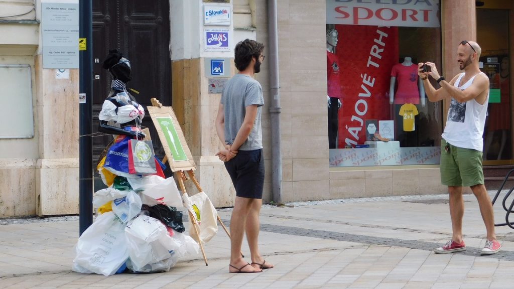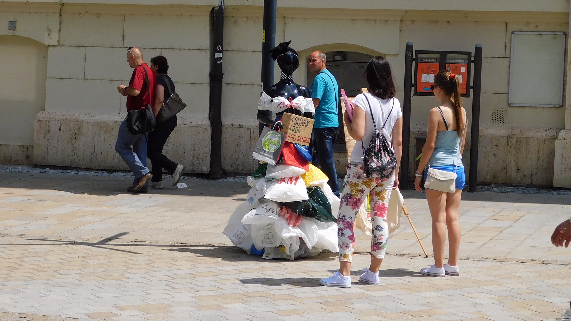 V rámci tejto kampane bola nainštalovaná plastová figurína, oblečená do plastových a igelitových tašiek. Tejto úlohy sa študentky zhostili naozaj bravúrne.