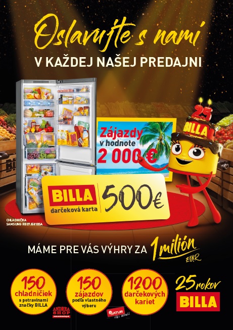 Spoločnosť BILLA sa rozhodla svoje významné výročie 25-ročného pôsobenia na Slovensku osláviť veľkolepo so všetkými svojimi zákazníkmi, pričom štedrosťou nešetrila.