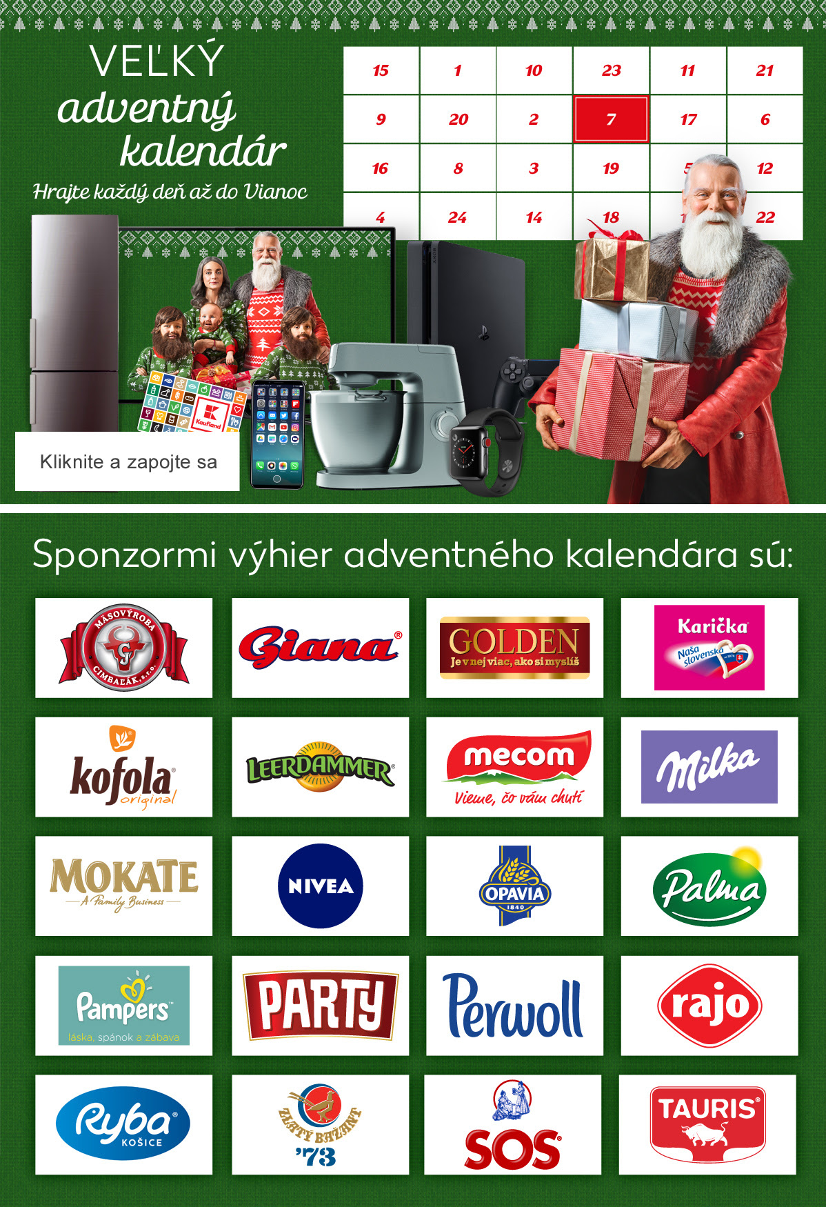 Sponzormi výhier adventného kalendára sú značky ako Kofola, Nivea, Rajo, Milka, Tauris, Zlatý bažant, Mecom a ďalšie.