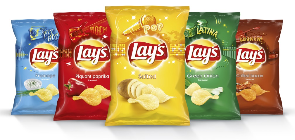 Zatiaľ čo najvyhľadávanejšie Lay’s Salted sa snúbia s popom, k tvrdšej rockovej hudbe patrí ostrejšia príchuť Piquant paprika, k hip-hopu pre zmenu Fromage, v rytme latina „znie“ najlepšie Green Onion a s country idú dohromady chipsy Lay’s Grilled bacon s údenou príchuťou dymu.