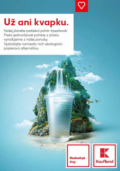 Kaufland sa minulý rok zaviazal, že do konca roka 2019 vyradí zo svojej ponuky všetok jednorazový plastový riad, slamky a poháre. Svoj záväzok plní s niekoľkomesačným predstihom a v súčasnosti zo svojej ponuky vyradil jednorazové plastové poháre, ktoré boli nahradené ekologickejšou papierovou verziou.