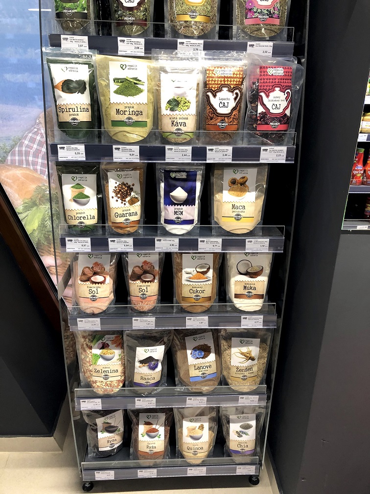 Domáci či zahraniční turisti nájdu na predajnej ploche veľkej 205 m2 popri bežnom sortimente aj obľúbené gastronomické suveníry ako kúpeľné oblátky, mäsové výrobky a rôzne ďalšie špeciality od lokálnych dodávateľov.
