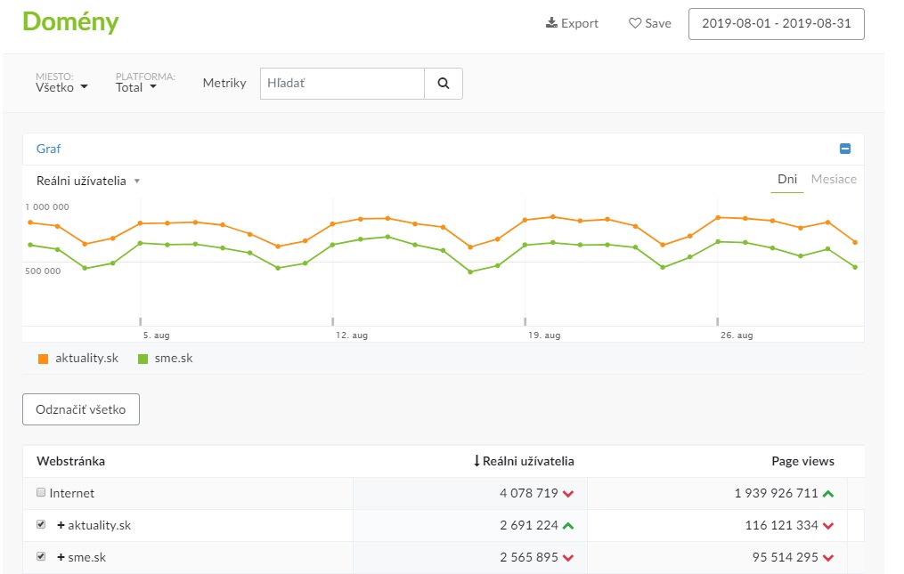 Pozrite si grafy čítanosti SME.sk a Aktuality.sk, podľa prieskumu AIM monitor za august 2019: