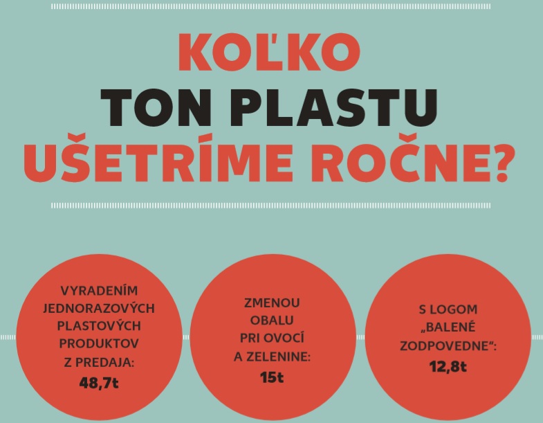„Vyradením jednorazových plastových produktov ušetríme ročne 48,7 ton plastu. Zmeny obalov pri ovocí a zelenine ušetria 15 ton a prvé produkty s označením Balené zodpovedne ušetria ďalších 12,8 tony. Celkovo ušetríme 76,5 tony pôvodného PET, teda nového plastu ročne a toto číslo bude ďalej rásť,“ vyhlásil Bendík.