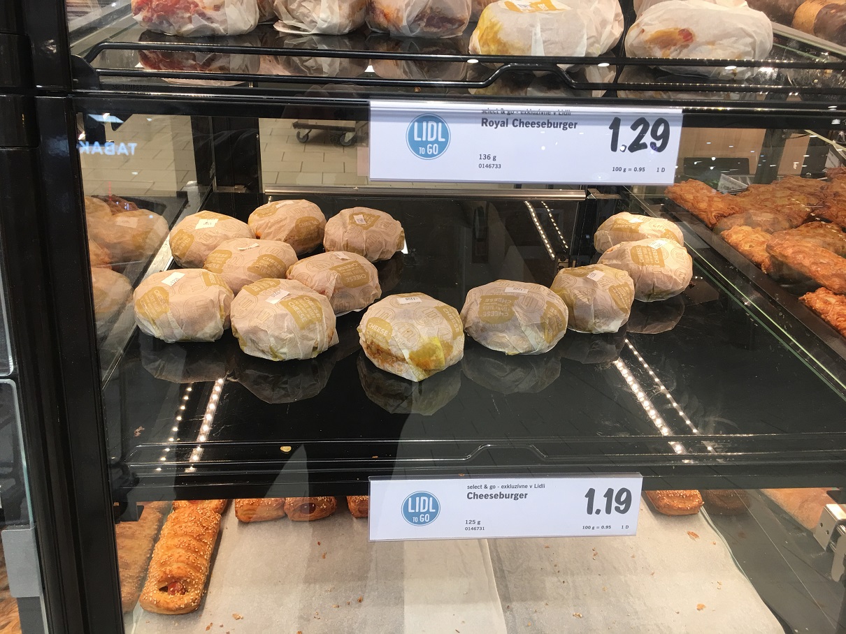 Podľa ekonomického magazínu INDEX sa fastfoodová ponuka Lidl-u podobá na ponuku od McDonald’s nielen vizuálne, ale i názvom. Lidl pre INDEX uviedol, že „podobnosť je čisto náhodná, pretože burger treba zabaliť do mastného papiera, ktorý zhodou okolností tiež používa „mekáč“ a uvedené názvy na produktoch sú len opisom toho, čo môže zákazník čakať.“