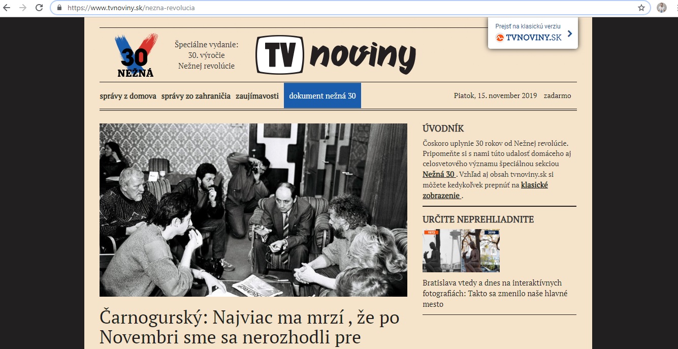 Taktiež spravodajský portál TVNoviny.sk spustil pri príležitosti 30. výročia Nežnej revolúcie špeciálnu sekciu Nežná 30 v originálnom retro dizajne a s jedinečným monotematickým obsahom.