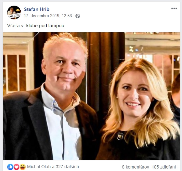 V decembri 2019 sa Čaputová a Andrej Kiska zúčastnili na Vianočnom večierku magazínu .týždeň. Hríb sa vtedy pochválil na sociálnej sieti takouto fotografiou: