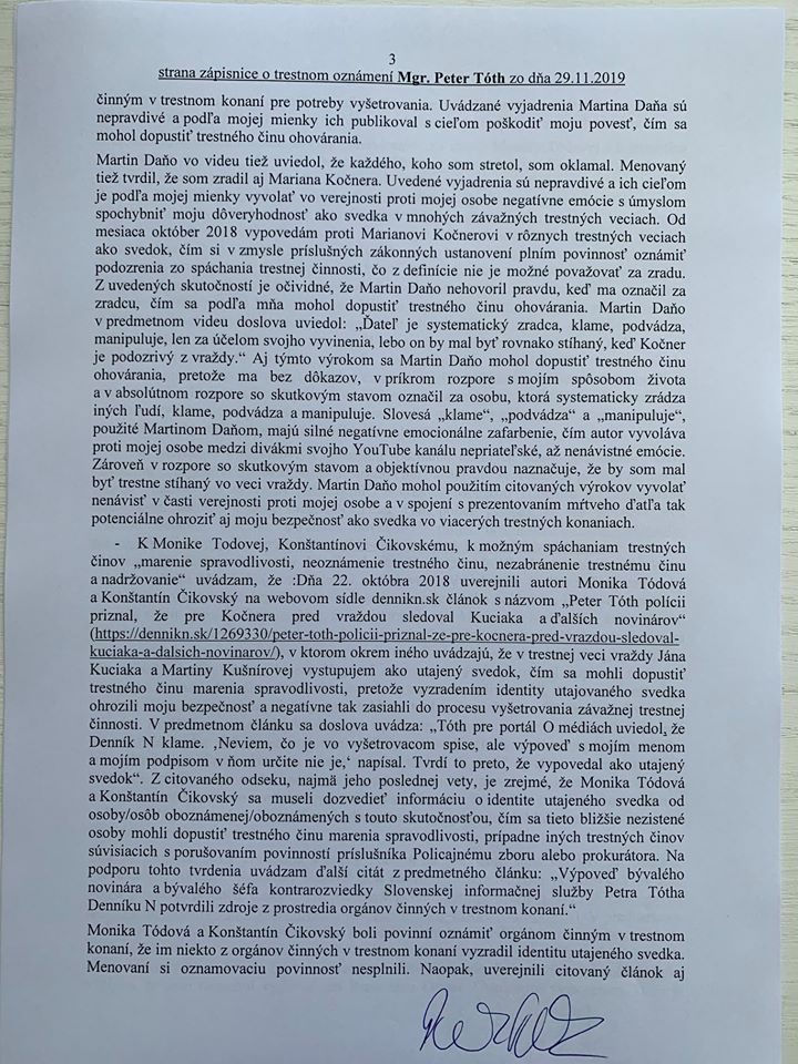 Prečítajte si celé znenie podaného trestného oznámenia: