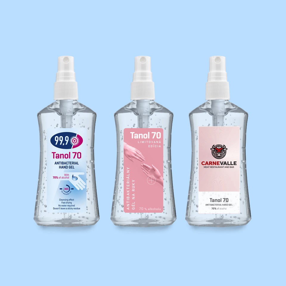 Čiže na prednú etiketu umiestniť svoje logo. Ponuka je určená predovšetkým pre podnikateľské prevádzky, kde dochádza k pravidelnému kontaktu so zákazníkmi. TANOL 70 s vlastným logom je pekným darčekom a účinným ochranným prostriedkom.