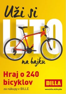 BILLA reaguje na tohtoročný zvýšený dopyt po bicykloch a pre svojich zákazníkov pripravila spotrebiteľskú súťaž „Uži si leto na bajku“. Súťažou chce osloviť najmä vyznávačov aktívneho životného štýlu. Od 22. júla do 31. augusta reťazec spolu rozdá 240 športových bicyklov.