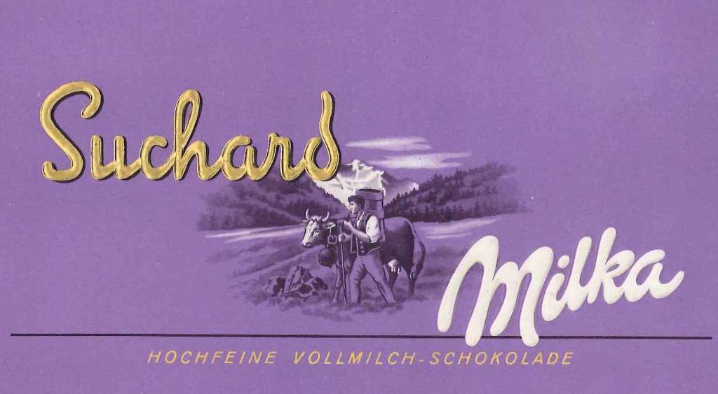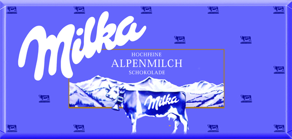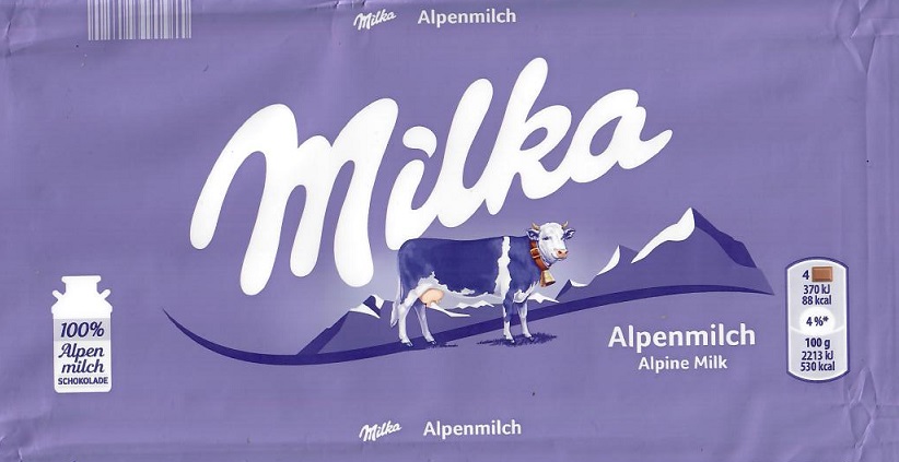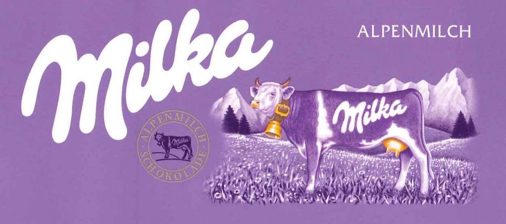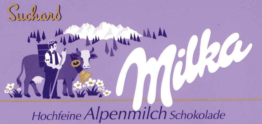 Symbol kravy spolu s alpskou krajinou je s Milkou spojený od jej vzniku v roku 1901, kedy bola prvá tablička čokolády predaná v Nemecku. Na vtedajšom papierovom obale bol vyobrazený pastier s týmto zvieraťom v hornatej krajine.