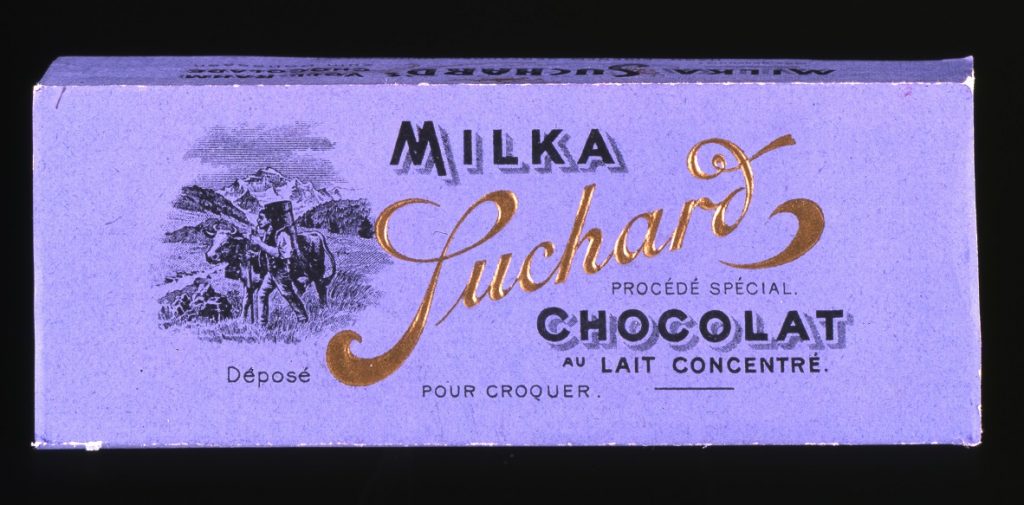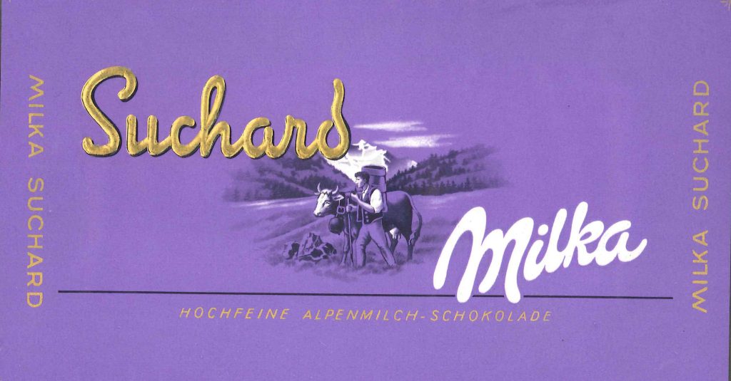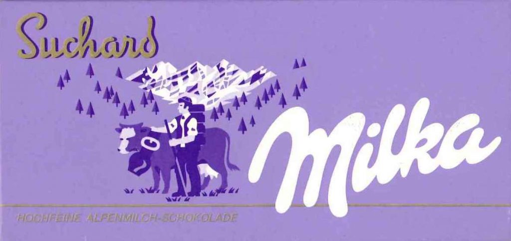 Papierový obal už vtedy niesol typickú fialovú farbu, ale až v roku 1964 sa známy lila odtieň stal oficiálnou farbou značky. V roku 1972 mala reklamná agentúra Young & Rubicam za úlohu osviežiť branding značky a urobiť z kravičky centrálnu postavu všetkých obalov a kampaní. To sa podarilo a v nasledujúcom roku Milka kravička absolvovala aj debut v televíznej reklame.