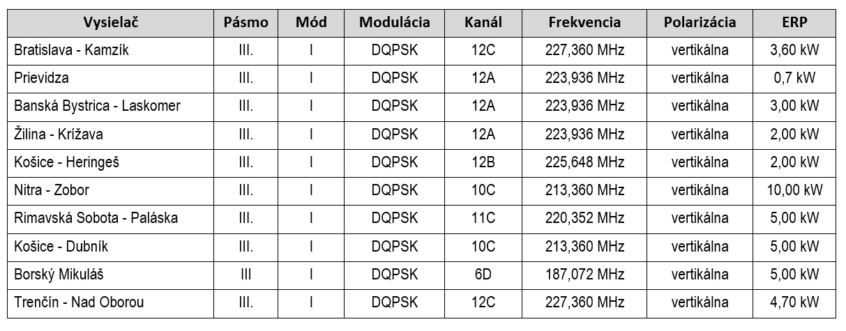 Zoznam prevádzkovaných T-DAB+ vysielačov :