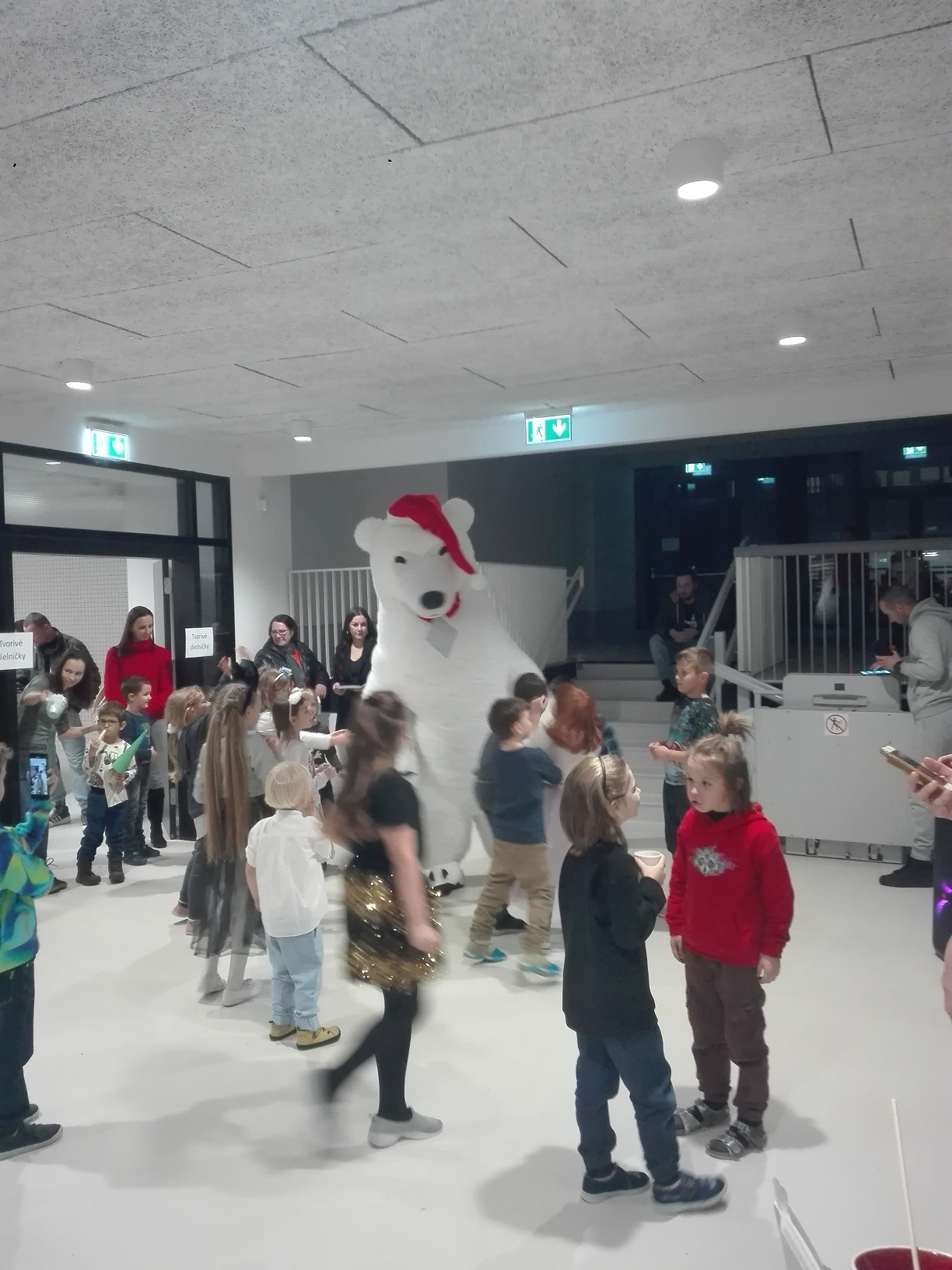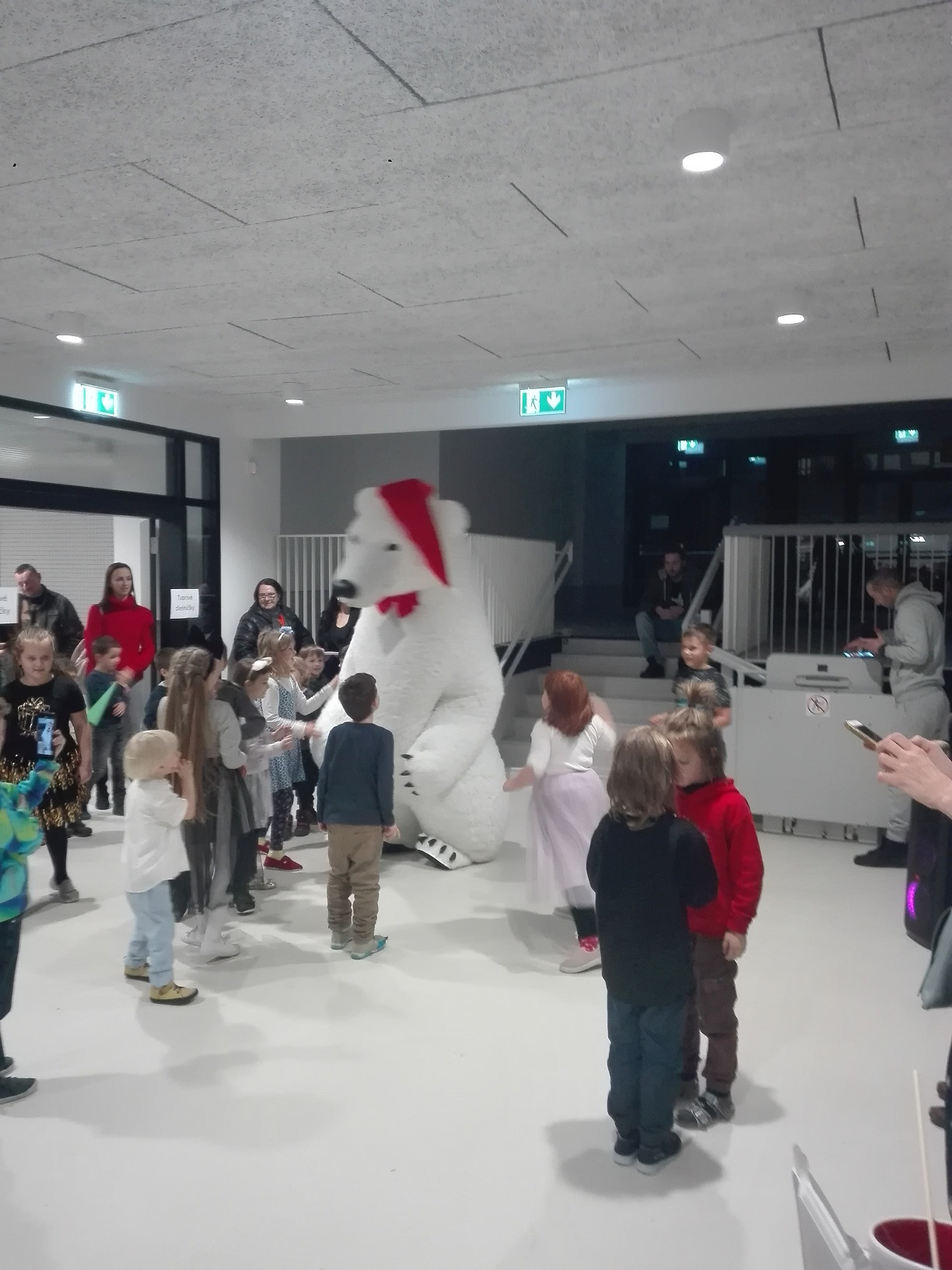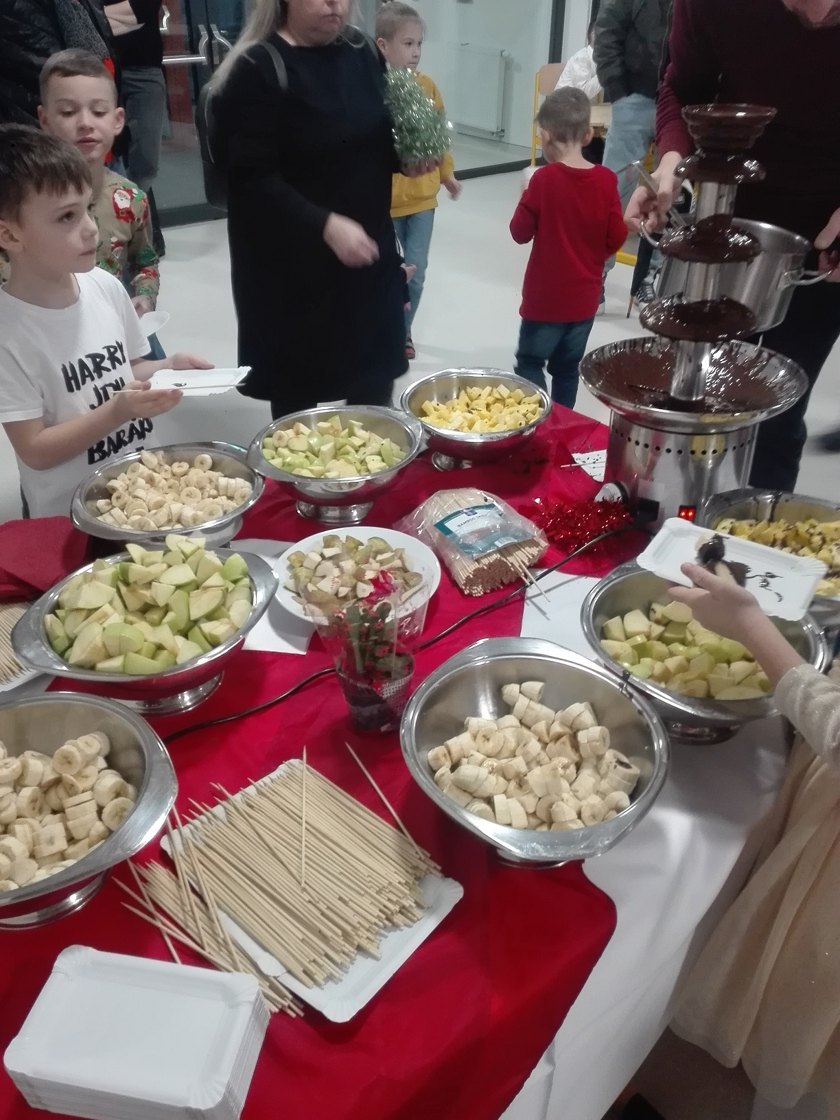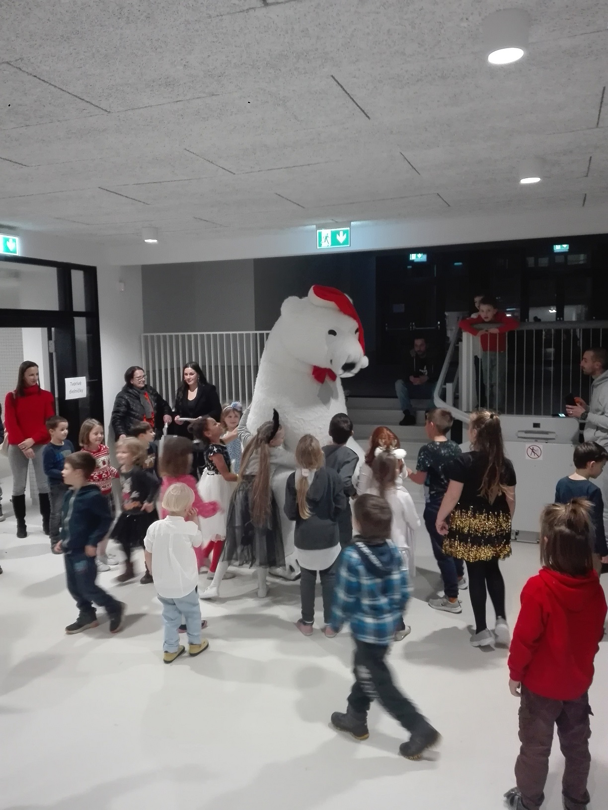 Obrovský detský záujem zožala čokoládová fontána do ktorej si deti namáčali ovocie. Ako hudobný podmaz všade hrala vianočná muzika… a asi najväčším prekvapením večera bola detská diskotéka s obrovským plyšovým polárnym medveďom, to bol naozaj zlatý klinec programu a všetky deti sa užasne zabávali, pozrite si krátke video!