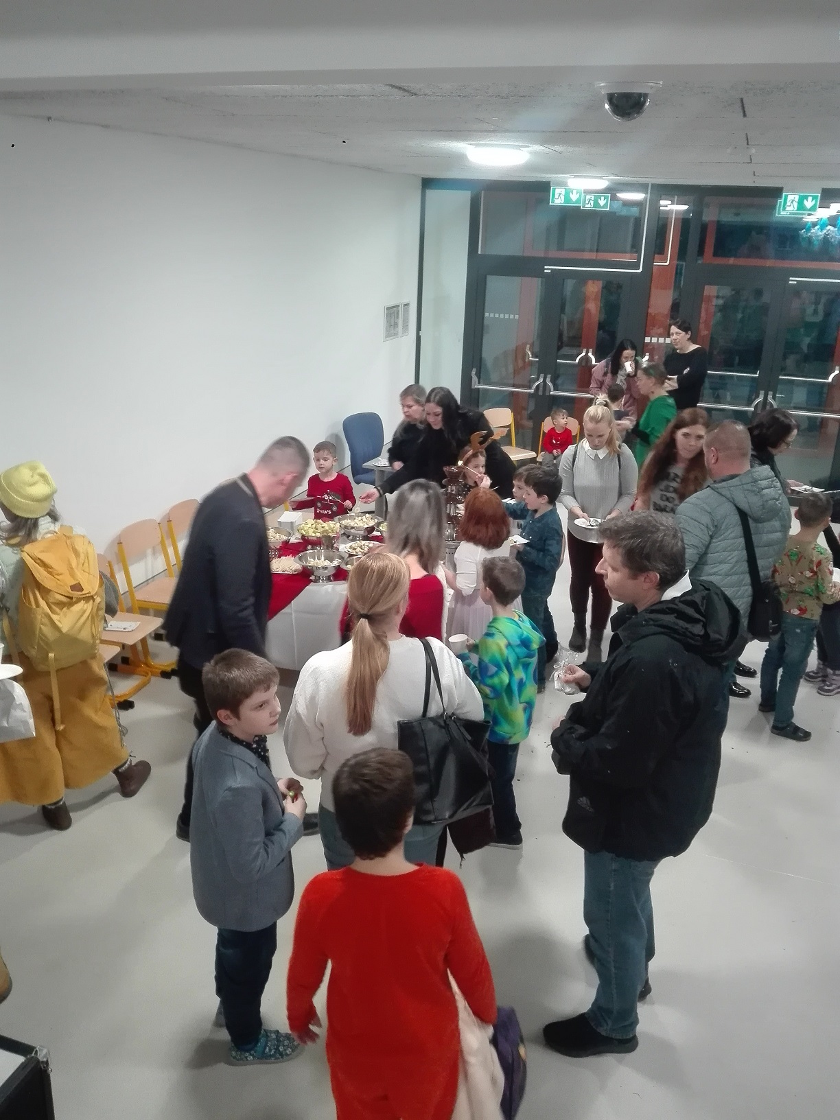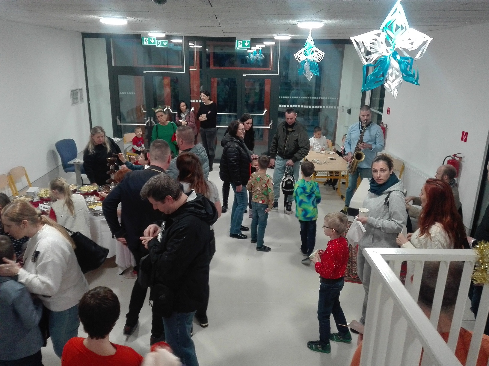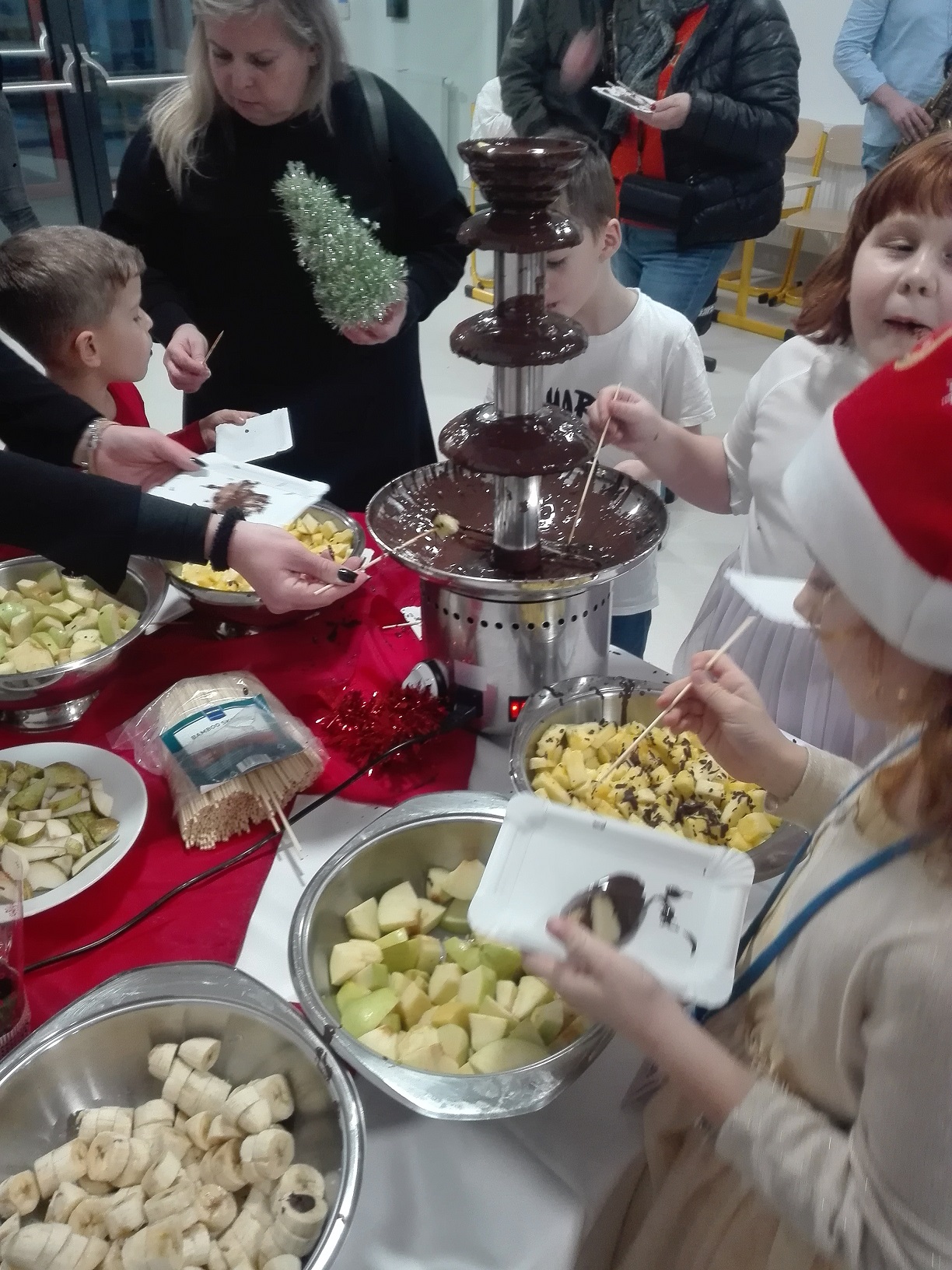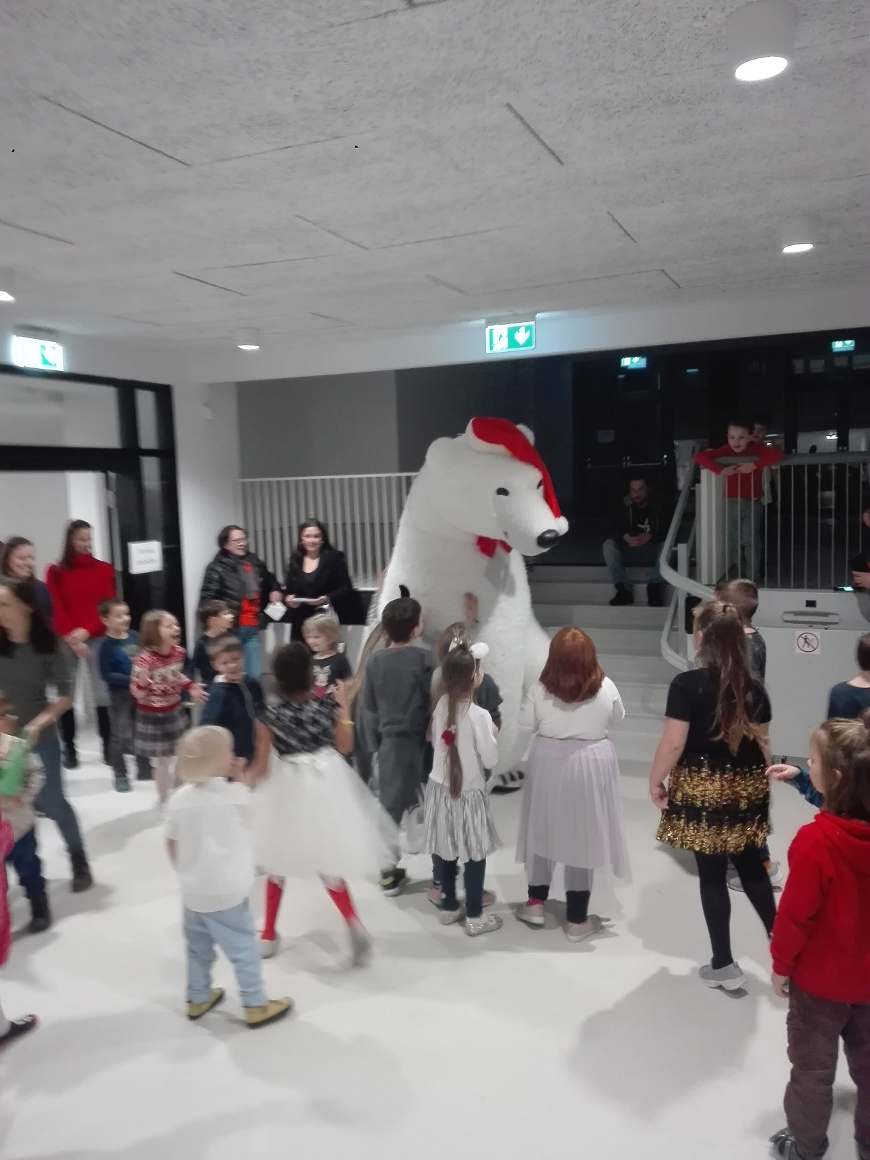 Obrovský detský záujem zožala čokoládová fontána do ktorej si deti namáčali ovocie. Ako hudobný podmaz všade hrala vianočná muzika… a asi najväčším prekvapením večera bola detská diskotéka s obrovským plyšovým polárnym medveďom, to bol naozaj zlatý klinec programu a všetky deti sa užasne zabávali, pozrite si krátke video!