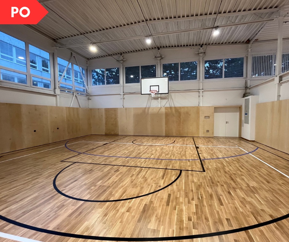 • Osadili sme novú kvalitnú palubovku a vyznačili čiary pre niekoľko športov.