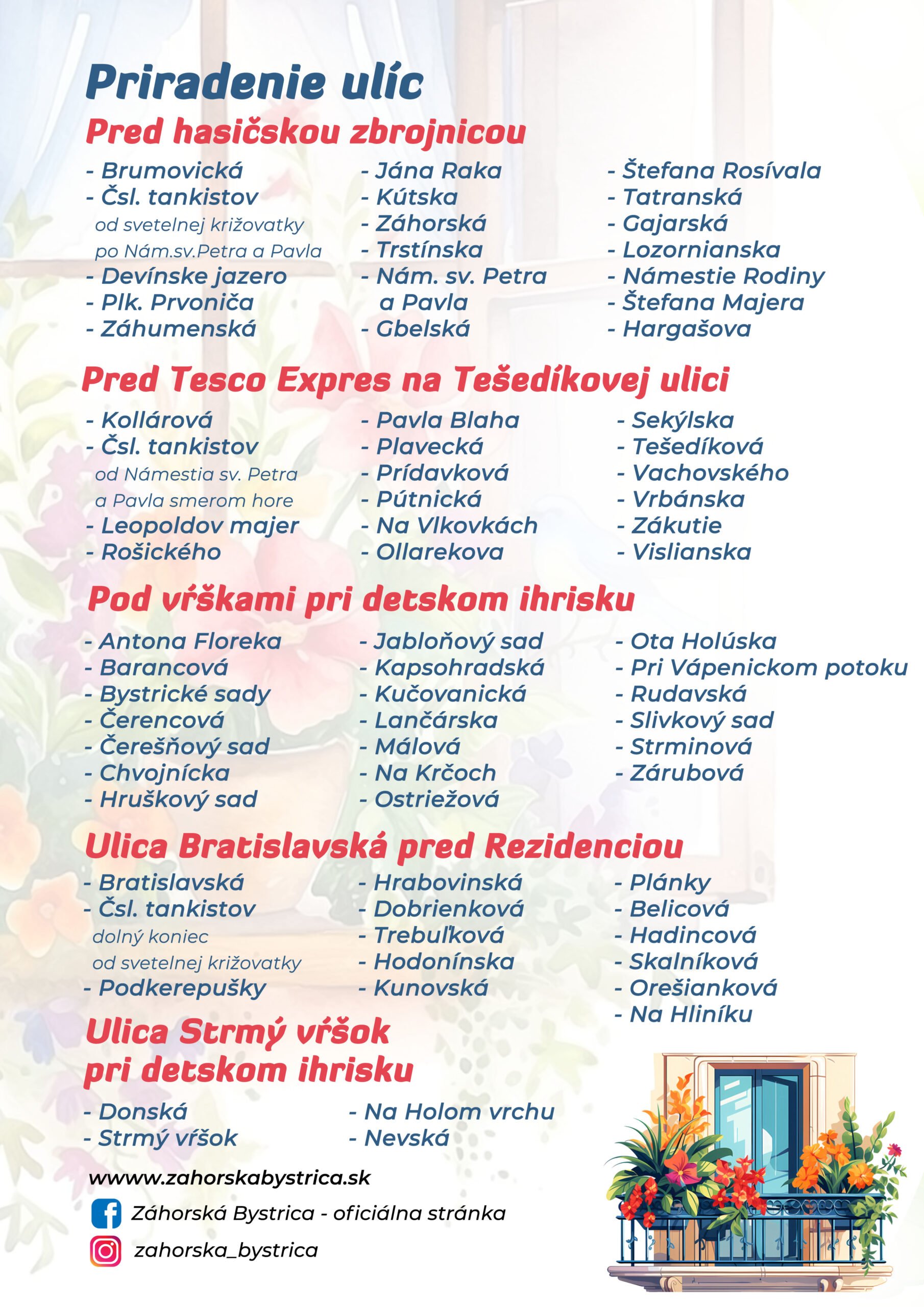 Mestská časť informuje: „Tradičná Jarná akcia je za dverami! Všetkým obyvateľom s trvalým pobytom v Záhorskej Bystrici daruje mestská časť na jedno súpisné číslo sadenice predpestovaných kvetov balkónoviek.
