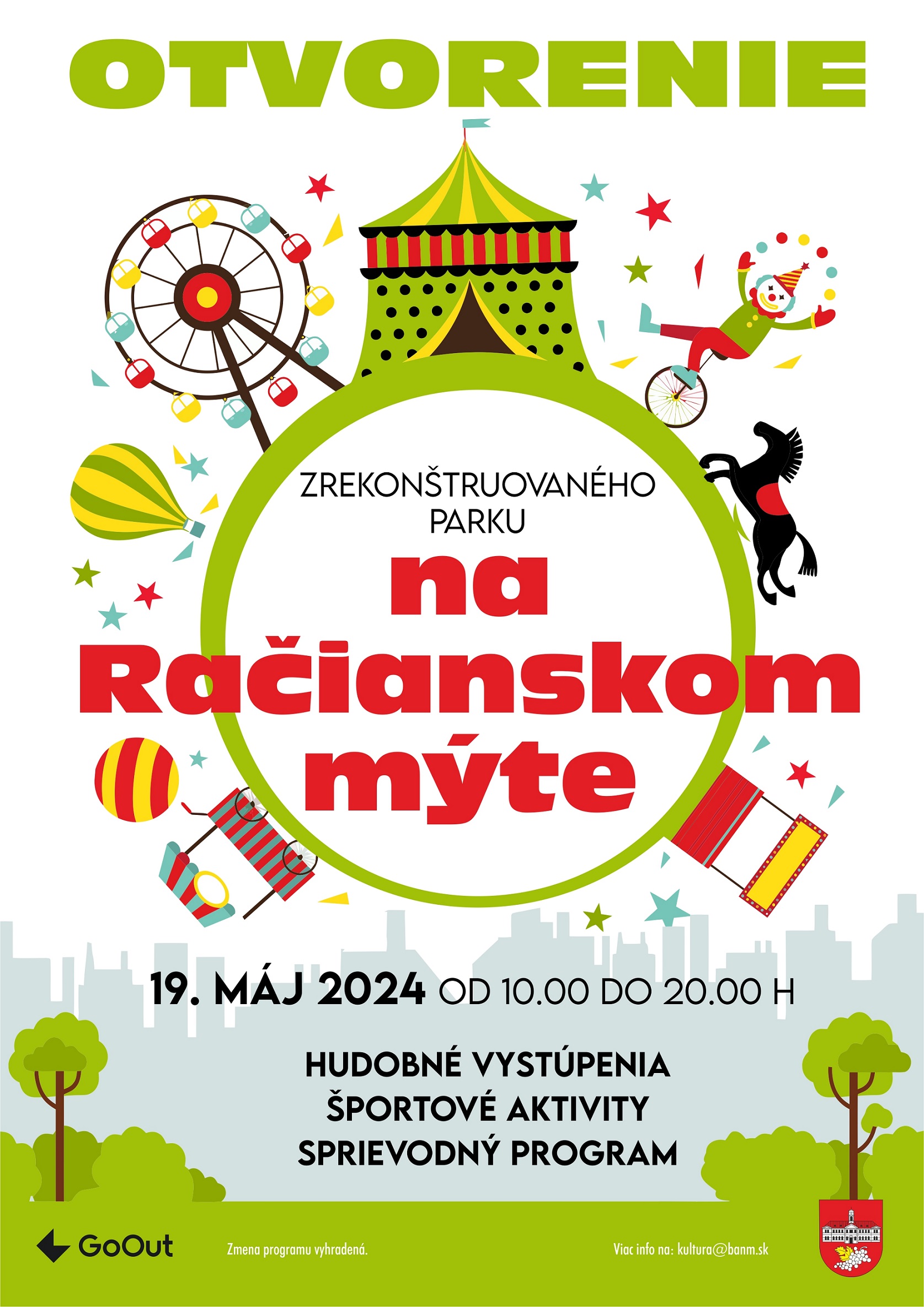 Kompletný program slávnostného otvorenia parku na Račianskom mýte je zverejnený na webstránke mestskej časti banm.sk. Zmena programu je vyhradená.