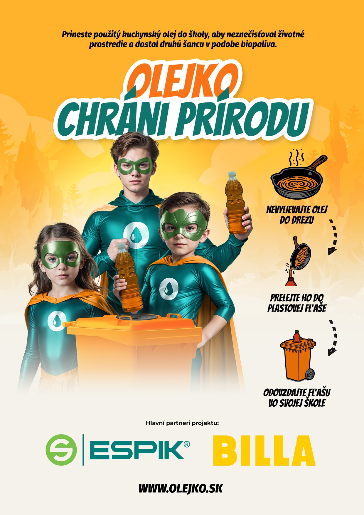Projekt spoločností BILLA a ESPIK „Olejko chráni prírodu“ prináša riešenie, ktoré naša príroda naozaj ocení. Domácnosti majú príležitosť zmeniť niektoré tradičné návyky, čím prispejú k tomu, aby bol svet lepším miestom. Len dobre informované deti a mládež totiž budú správne triedenie odpadu brať ako samozrejmosť.