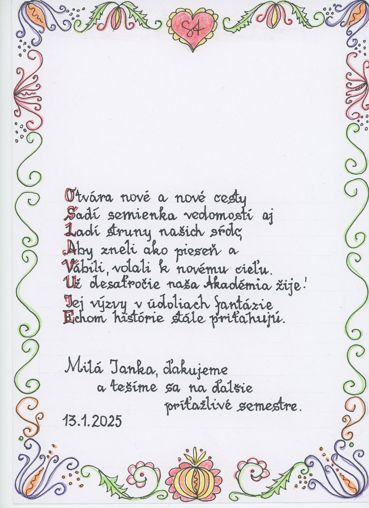 Výnimočnou súčasťou stretnutia bol pamätný list, ktorý pripravila miestna poetka Dobroslava Luknárová. Tento list bol nielen umeleckým dielom, ale aj dojímavou pripomienkou významu SeniorAkadémie pre komunitu: