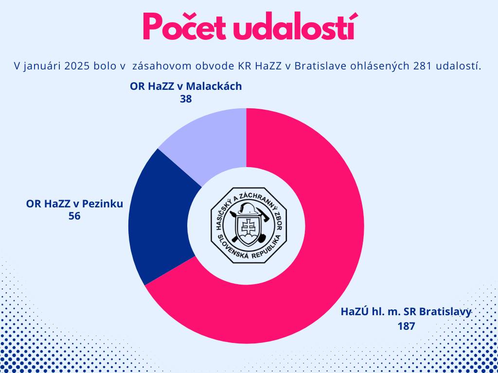 V zásahovom obvode KR HaZZ v Bratislave bolo v januári ohlásených 281 udalostí. Najviac ich zaznamenal Hasičský a záchranný útvar hlavného mesta SR Bratislavy (187 udalostí), nasledovaný Okresným riaditeľstvom HaZZ v Pezinku (56 udalostí) a Okresným riaditeľstvom HaZZ v Malackách (38 udalostí).