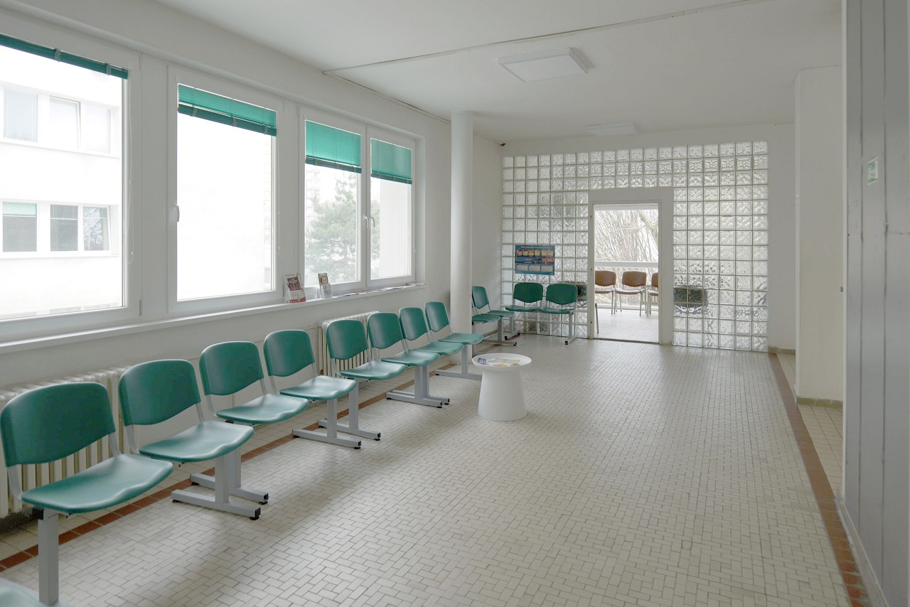 Za účelom zvýšenia tepelného komfortu v čakárni boli pôvodné sklenené steny bez dverí nahradené automatickými dverami. Všetky dvere ambulancií boli vymenené za bezpečnostné a ostatné pôvodné dvere boli nahradené modernými interiérovými. Podlahy, pôvodne pokryté linoleom, boli kompletne nahradené dlažbou, čo výrazne zjednodušuje údržbu. Celý vstup, obe bočné chodby, čakáreň a časť schodiska prešli vymaľovaním bielou umývateľnou farbou, čím získali modernejší vzhľad. Vymenené boli aj revízne dvierka všetkých stúpačiek.