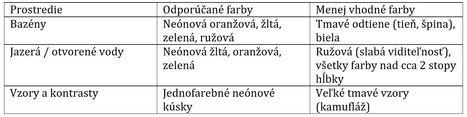 - Najlepšími farbami pre viditeľnosť boli neónová oranžová, neónová zelená, jasne žltá a ružová. Toto sú farby, ktoré skutočne zaujmú oko a pomáhajú udržať obraz pod vodou viditeľným.