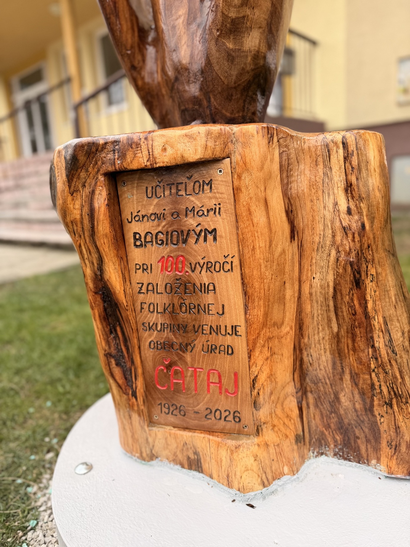 V centre obce pribudol nový drevený tulipán vyrezaný z orechového kmeňa. Michal Feik uviedol, že pripomína storočnicu folklórnej tradície v Čataji, ktorú si obec pripomenie 16. mája 2026. Nejde pritom len o symbol piesní, tancov či krojov, ale aj o poctu ľuďom, ktorí miestne zvyky uchovávali a odovzdávali ďalej.