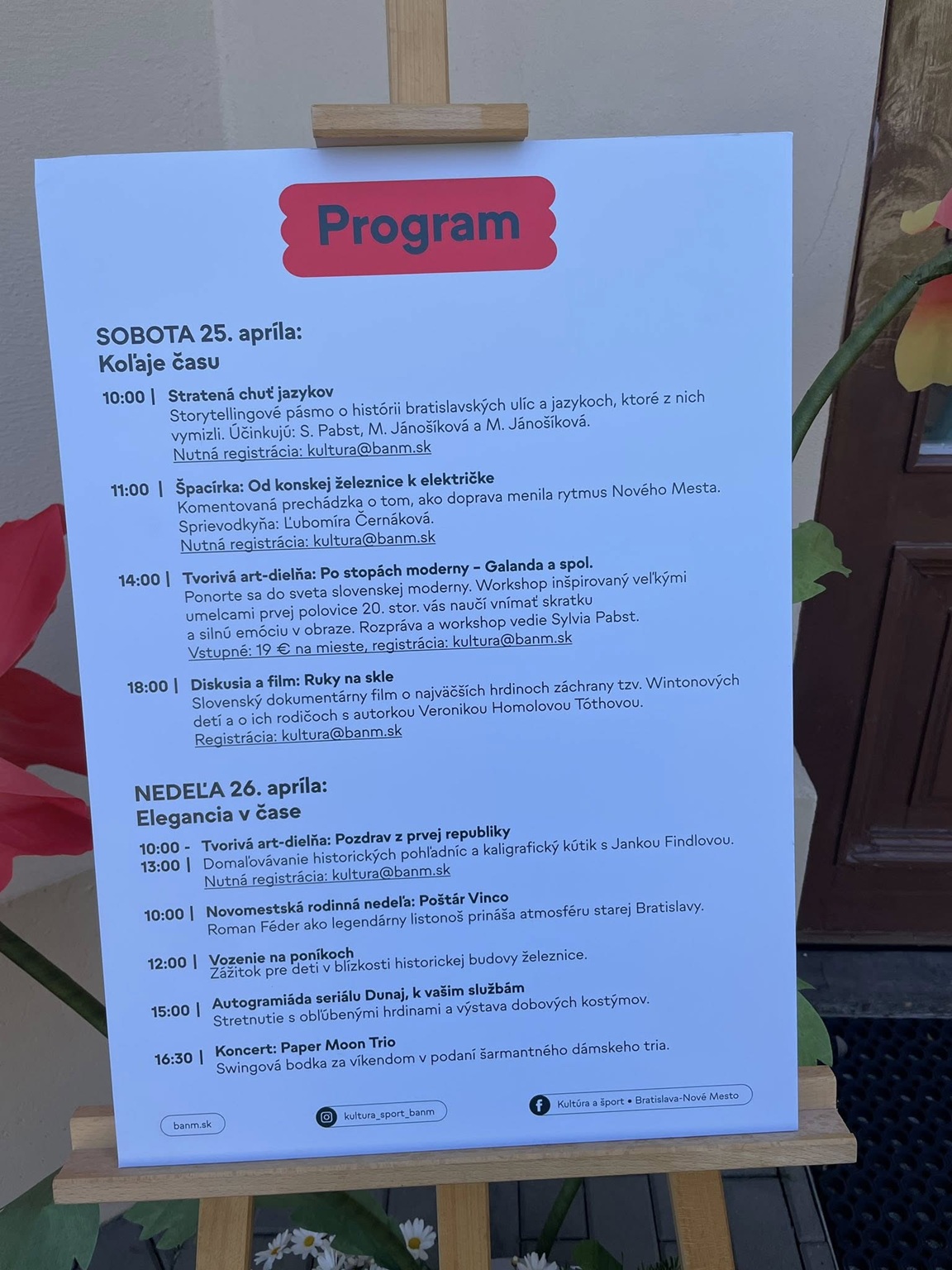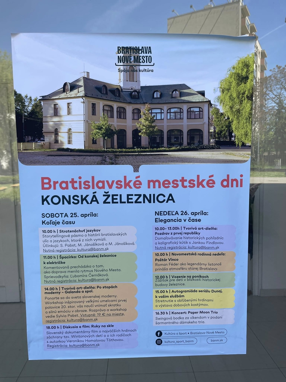 V Bratislave – Novom Meste sa v nedeľu 26. apríla 2026 uskutočnila terénna prednáška, ktorú viedla sprievodkyňa Ľubomíra Černáková. Podujatie účastníkov previedlo historickým, urbanistickým aj dopravným vývojom tejto časti mesta od stredoveku až po 20. storočie. Ústredným bodom bola bývalá stanica Konskej železnice, kde sa program začal aj skončil diskusiou.