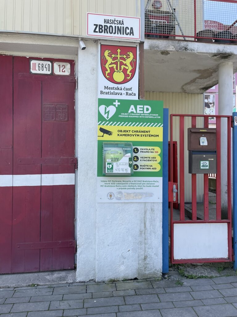 Prvý verejný defibrilátor AED v Rači je umiestnený na Detvianskej ulici č. 12 na budove dobrovoľného hasičského zboru vedľa hotela Barónka, teda práve tam, kde by ho v prípade potreby verejnosť hľadala.